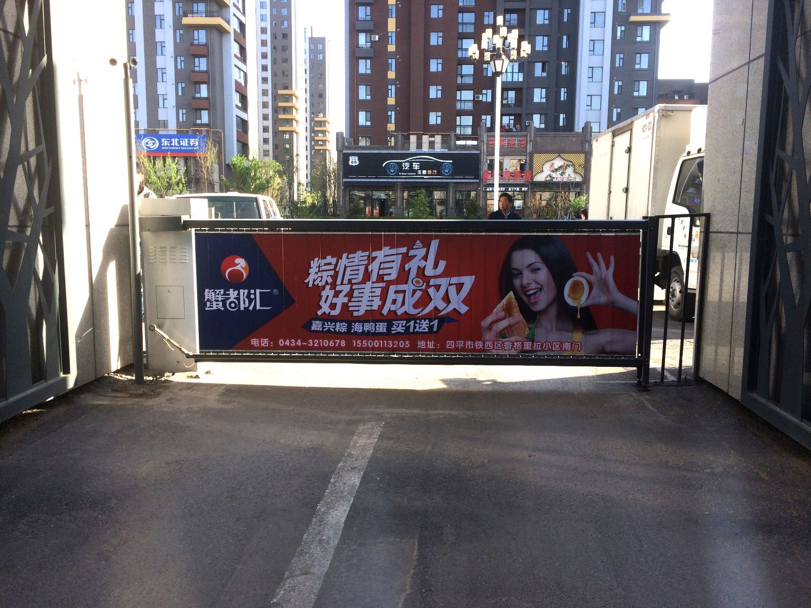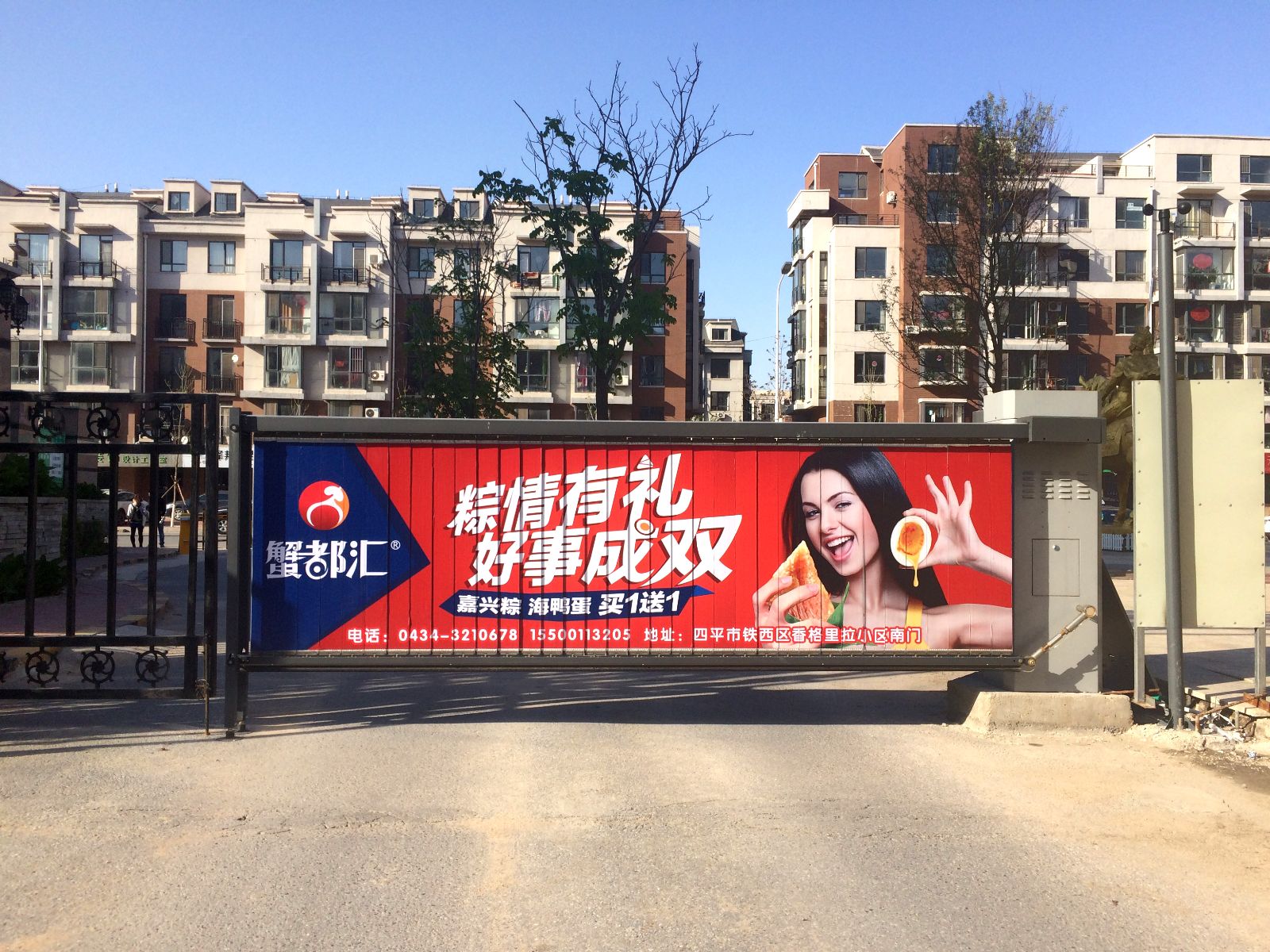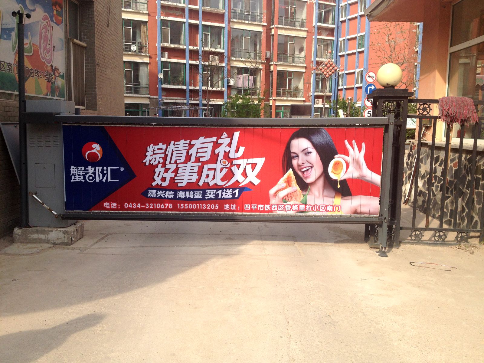 恭喜四平蟹都(dōu)彙小(xiǎo)區(qū)道(dào)閘廣告上(shàng)畫(huà)成功!