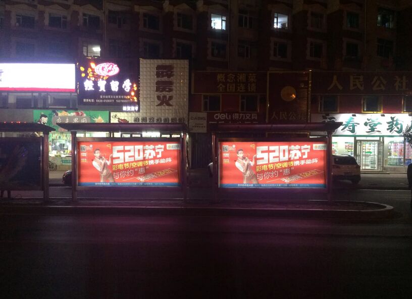 恭喜四平蘇甯電(diàn)器(qì)公交候車(chē)廳廣告上(shàng)畫(huà)成功!