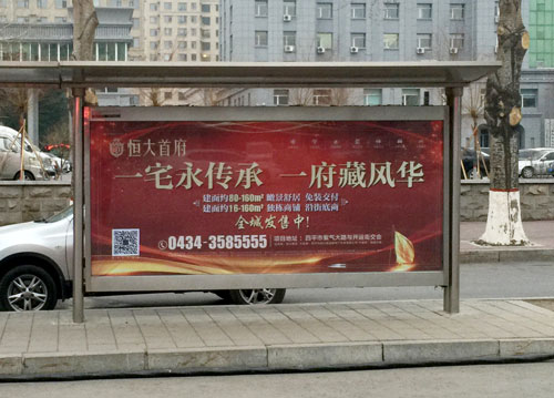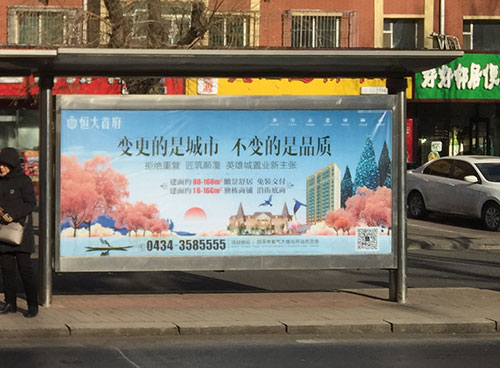 深藝廣告恭喜四平恒大(dà)地(dì)産候車(chē)廳廣告位上(shàng)畫(huà)成功!