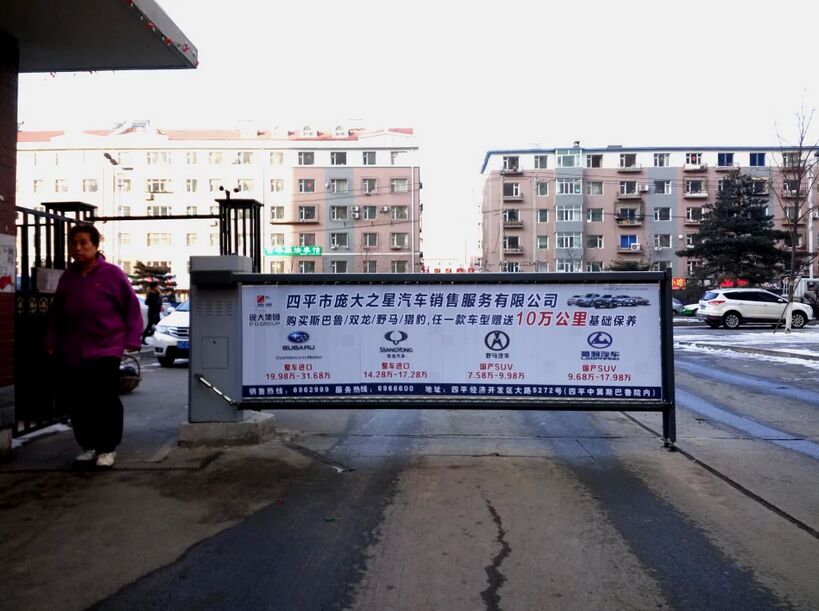 恭喜四平斯巴魯、雙龍、野馬、獵豹小(xiǎo)區(qū)道(dào)閘廣告上(shàng)畫(huà)成功!